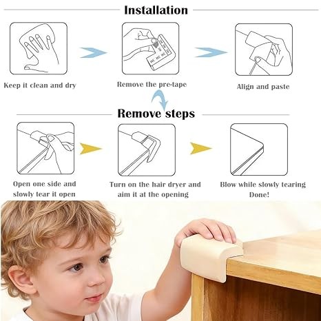 60-Second Hassle-Free Installation: All of our secure edge corner bumpers are pre-taped and heavy-duty adhesions for instant use-simply clean the furniture corner, peel off the tapes, align the guard perfectly with the corner, and press gently to secure,No extra tools or messy glue required.