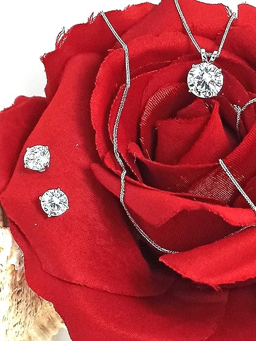 18 Karat SOLID GOLD FINE Diamond jewelry sets for women HANDMADE Jewellery 18" Single Solitaire Diamond Necklace Pendant Earrings SET 3.5 carat Valentines day Birthday gift for wife who has everything