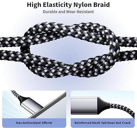 6FT/6Feet/2Meters USB C Apple 17 16 Charging Cord :The iPhone 17 16 Pro Max Charger with 6foot Long type c to c charging nylon braided cable supports PD 3.0 fast charging speed max up to 5V/6A, The cable's reversible design allows for effortless plug-in, while enabling efficient 480Mbps data syncing. With its generous 6ft length, you'll move your device around while keeping your device powered up.(Not compatible with iPhone 14/13/12/11 which need a Lightning Cable)