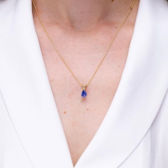 Angara Natural Tanzanite Solitaire Pendant for Women | V-Bale Pear-Shaped Tanzanite Solitaire Pendant in 14K Solid Gold/Silver/Platinum With 18" Chain | December Birthday, Gemstone Jewelry Gift