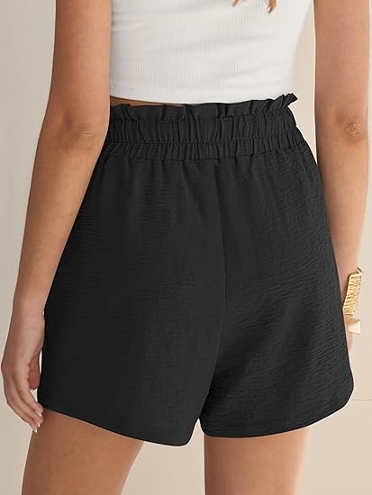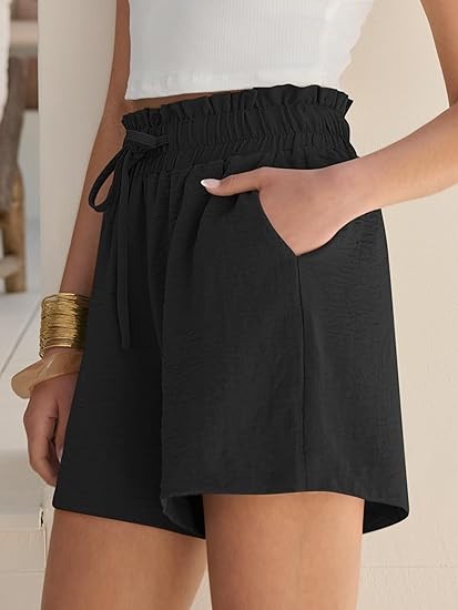 Size - S=US(4-6), M=US(8-10), L=US(12-14), XL=US(16-18).More details in rich description.These high waisted shorts women feature an elastic waist,drawstring design,offering flexible,flattering comfort that moves with you,perfect for work,travel,or relaxing daily activities.