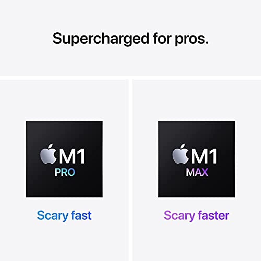 · Apple M1 Pro or M1 Max chip for a massive leap in CPU, GPU, and machine learning performance· Up to 10-core CPU delivers up to 3.7x faster performance to fly through pro workflows quicker than ever· Up to 32-core GPU with up to 13x faster performance for graphics-intensive apps and games· 16-core Neural Engine for up to 11x faster machine learning performance· Longer battery life, up to 17 hoursUp to 64GB of unified memory so everything you do is fast and fluid · Up to 8TB of superfast SSD storage launches apps and opens files in an instant