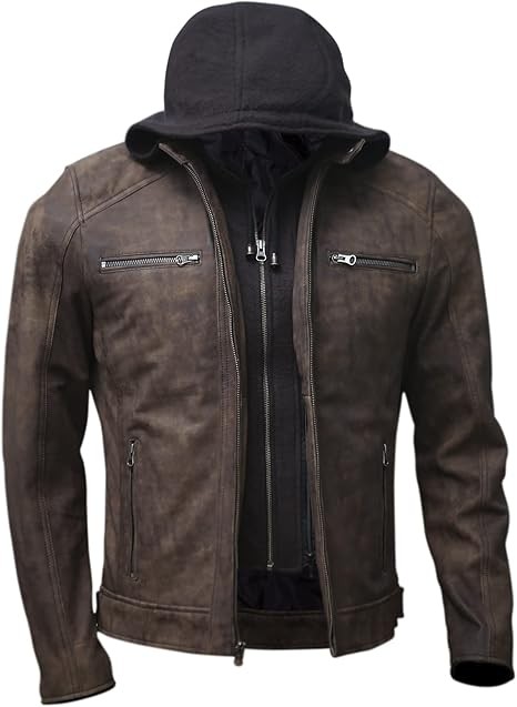 Breaks the Biting Wind: This leather jacket men hand crafted with high grade genuine lambskin hide and polyester lining, this hooded motorcycle jacket is guaranteed to keep you warm than traditional leather while providing a secure fit
