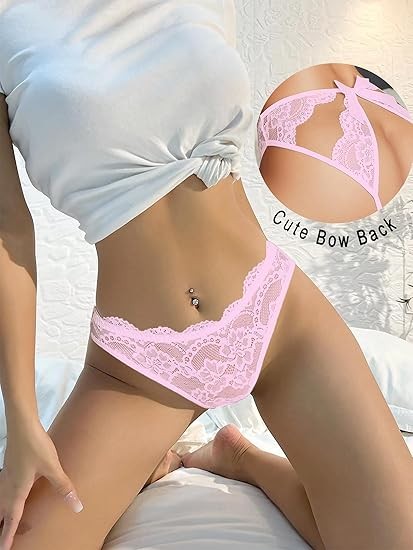 • Flirty & Alluring Look: Made with floral lace and a delicate wavy trim, this lace panty boasts a seductive open back with a cute bow, enhancing your femininity and adding excitement