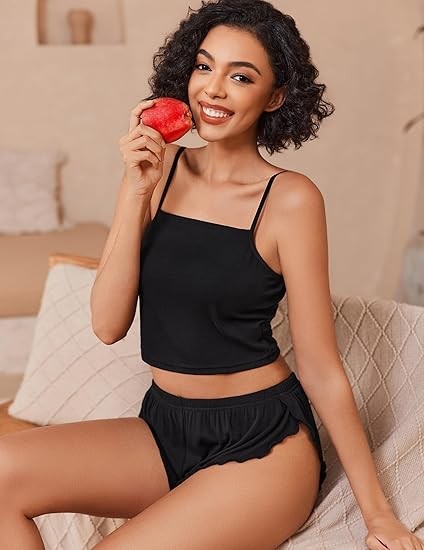 【2 PIECE SHORT PAJAMA SET】:This sexy pj set soft lingerie combines comfort and fashion,whether you are looking for sexy pajama set,summer lounge sets,cami and shorts set,sexy sleep set,camisole lingerie set,or 2 piece sleepwear,this versatile pajama set has you covered.