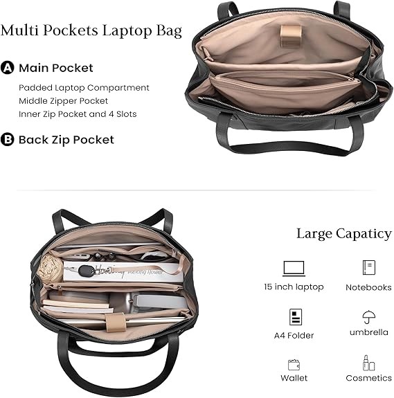 Stylish and Versatile: This leather tote for women can be your laptop computer bag, business work bag. It's perfect for work, business trip, meeting, or daily use. Great gift choice for your mother, girlfriend, wife, daughter on Mother's Day, Anniversary, Birthday, Graduation and Christmas