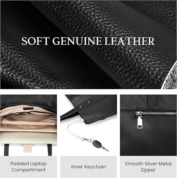 Genuine Leather Laptop Bag: This befen computer tote is crafted from full grain pebble cow leather, it is durable, scratch-resistant, soft to the touch and has a textured feel. The real leather made to last and get more beautiful with use and wear