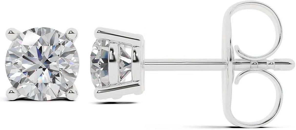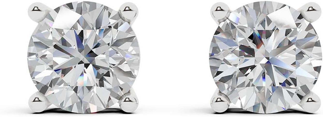 Belacqua Lab Grown Diamond Stud Earrings in 14K White Gold, Round Cut, 1/4 to 4 Carat, F-Color, VS-Clarity, 4 Prong Setting, Push Back, Jewelry for Women, Gift Box Included