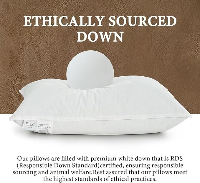 PERFECT SIZES FOR EVERY BED: Whether you have a cozy twin bed in a small guest room or a spacious king - sized bed in your master suite, our down pillow's standard size is the ideal fit. On a cold winter night, snuggle up with it on your queen bed, feeling its embrace as you read a book before sleep. In a dormitory, the standard size easily adapts to the twin bed, providing a touch of home comfort for students away from home.