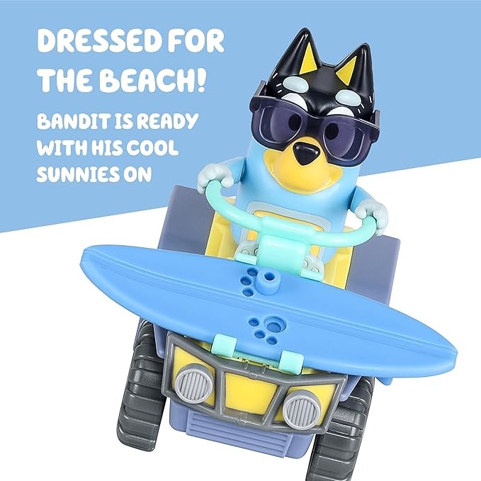 Vehicle Fun: Take Bandit (Dad) on exciting adventures with this surf beach toy, includes a 3" Bandit figure, Beach Quad Bike, and removable surfboard for nonstop seaside play