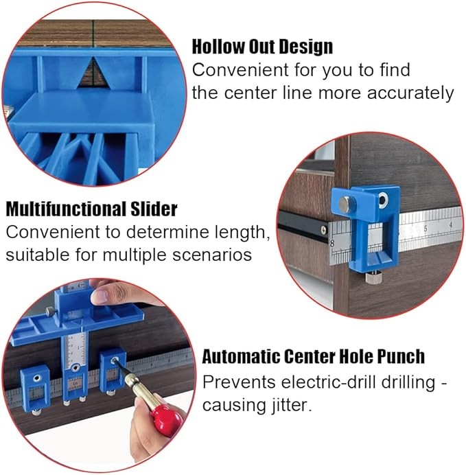 ⭐【Unique Advantages】- In order to avoid drilling directly with an electric drill will cause the jig to shake, we provide an "Automatic Center Punch". Use jig finded the location, you just need to use the "hole punch" to directly punch the small holes, and then use the electric drill to punch the big holes on have already been punched small holes. It is a very ingenious way.