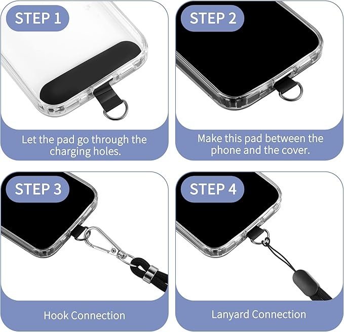 【Easy Installation】No tools are required.You just need to insert the pad through the charging hole of the fully covered phone case, then plug in your phone and connect to the lanyard. Please note that the half cover phone case is not supported.