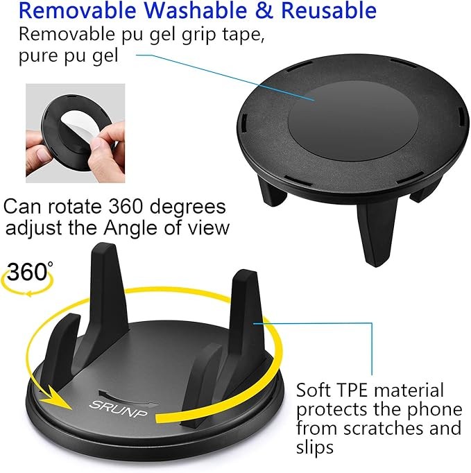 [Strong adhesive] The car mount holder is crafted with premium strong adhesive which sticks to the dashboard tightly, nano gel strong stick glue,reusable ,no traceless left.