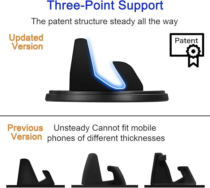 Car Phone Mount with Three-Point Support for Car Dashboard, 360 Degree Rotatable Washable Cell Phone Holder for Car Compatible Smartphones and GPS Devices