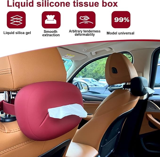Unique Design and Easy to Use:The soft silicone material design can quickly and easily solve any small troubles that may occur during driving; Easy to install, our car tissue dispenser features detachable and adjustable elastic straps that can be easily installed on sunshades, car seat backrests, and armrests, enhancing the overall decoration and level of the car interior