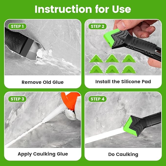 ❤️【What You Get】The caulking tools can use for home, kitchen, bathroom, window, sink joint, tile and so on. You will get 1x upgraded 5 in 1 caulking tool, 1 x sealant cover, 1 x black removal scraper, 4 x different shapes caulking scraper, 6 x different models silicone pads and responsible after-sale service. Contact the customer service center whenever you have a problem and get a solution within 24hrs.