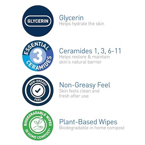 CeraVe Makeup Remover Wipes, Plant Based Face Wipes, Biodegradable in Compost, Waterless Face Wash, Travel Essentials for Women, Suitable for Sensitive Skin, Fragrance-free + Non-comedogenic, 25ct