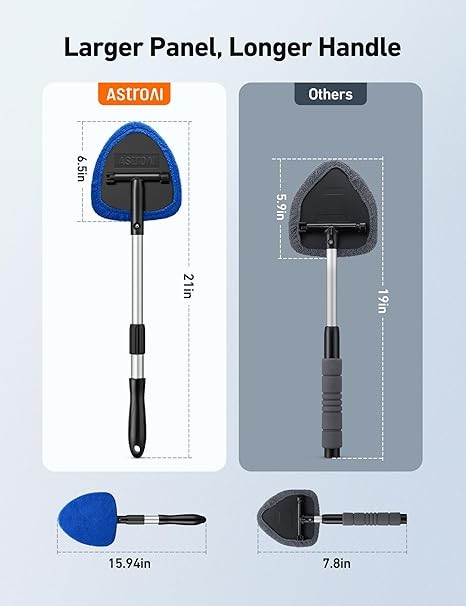 Perfect for any vehicle: From cars and SUVs to Cybertrucks and RVs—AstroAI window cleaner tool delivers a streak-free view interior and exterior, making it a great car accessories gift and road trip essentials for drivers. It can also be a helpful tool for hard-to-reach windows during household cleaning.
