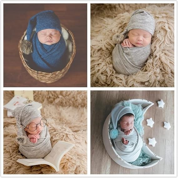 • 2). Package included hat and wrap. Wrap size about 40*170 cm/ 15.74* 66.92 inches. Suitable for 0-8 weeks baby boys or girls.(The weight of each baby of the same age will be different. This product is used for shooting. Hope you can understand that the product may be too large or too small for different babies. You can use additional assistance or change the way of taking pictures. Our model pictures are for reference only.)