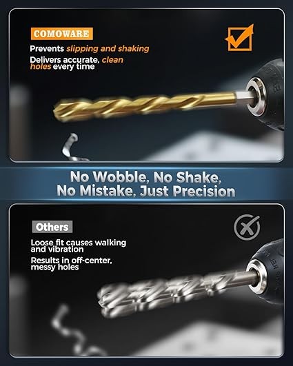 Quick Change - 1/4 inch hex shank fits into all power tools more easily and securely, specially for locking into quick change chuck.