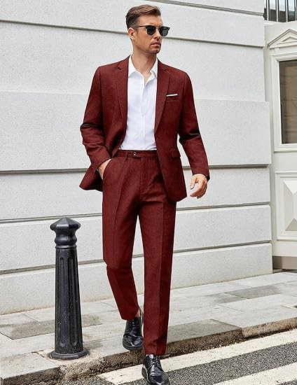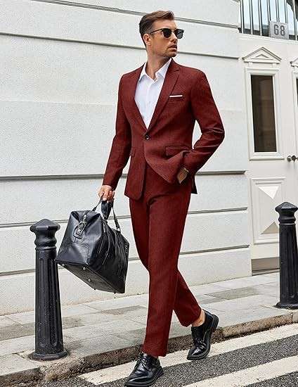 Textured Fabric - This men's 2 piece regular fit suit is made of wrinkle resistant and durable polyester. Fully lined design, tight stitching, and neat tailoring ensure you enjoy a quality textured fabric suit for men wearing experience.