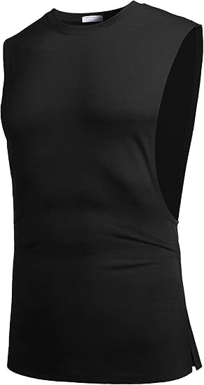Muscle Cut Off Shirt -- The men bodybuilding tank top have large arm holes make you training without restrictions, example unencumbered workouts and weightlifting. Round neck sleeveless design highlight your shoulders and arm muscles.