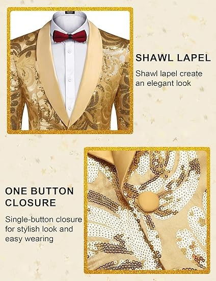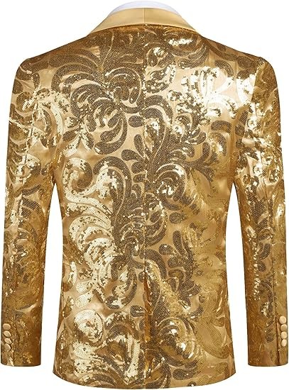 FASHION STYLE - This men's sparkle blazer features a stylish design with a shawl lapel, beautiful floral pattern and one button closure. Pair this glitter blazer for men with white dress shirt, a bow tie, classic black trousers and a pair of leather shoes to make you stand out from the crowd.