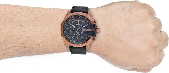 THE WATCH SAYS IT ALL: Only The Brave; when you wear those words featured on the Mega Chief Diesel watch chronograph dial, you show the world how you live each minute; in fact, the watch's three sub-dials track minutes, seconds, and tenths of seconds
