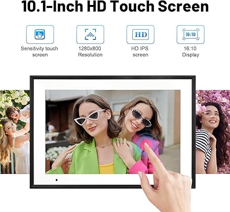 Digital Picture Frame 10.1 Inch WiFi Digital Photo Frame IPS HD Touch Screen Smart Cloud Photo Frame with 32GB Storage, Auto-Rotate, Easy Setup to Share Photos or Videos Remotely via AiMOR APP (Black)