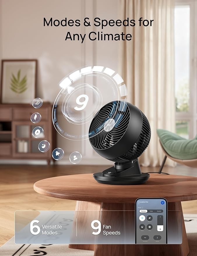 ???????? ???????????? ?????: Choose from 6 airflow modes and 9 speed settings to match any season and personalize comfort. The table fan pairs perfectly with other DREO appliances such as heaters, coolers, and humidifiers for year-round comfort