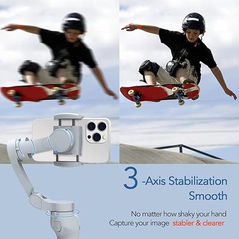 【FAST CHARGING WHILE IN USE】 - The phone gimbal stabilizer only takes 80min to fully charge.This iphone gimbal offers fast charging times, allowing you to get back to shooting in no time. You can charge it quickly while in use, ensuring you never miss a shot. You can take breathtaking footage with your smartphone.Great for travel shooting, producing short videos, wedding,music and sports shooting, etc.