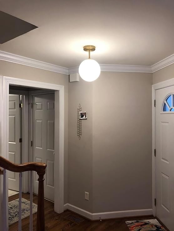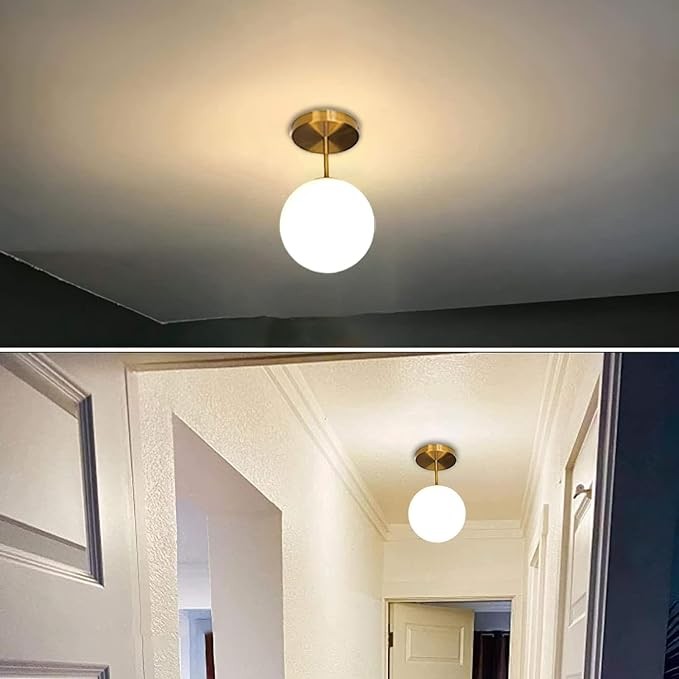 【Mid Century Modern Style Globe Ceiling Light】With Classic Mid Century Modern style, the polished brushed brass finish will maintain its color and anti-rust properties for many years. With an opal glass to elevate this unique ceiling light to luxury quality.