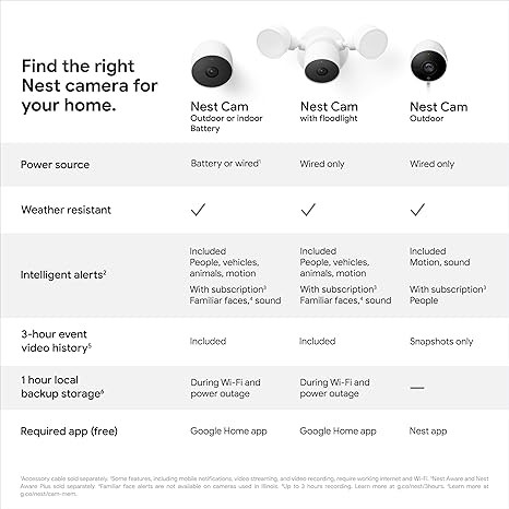 Nest Cam requires the Google Home app and a free Google Account; it’s not compatible with the Nest app or the Nest site
