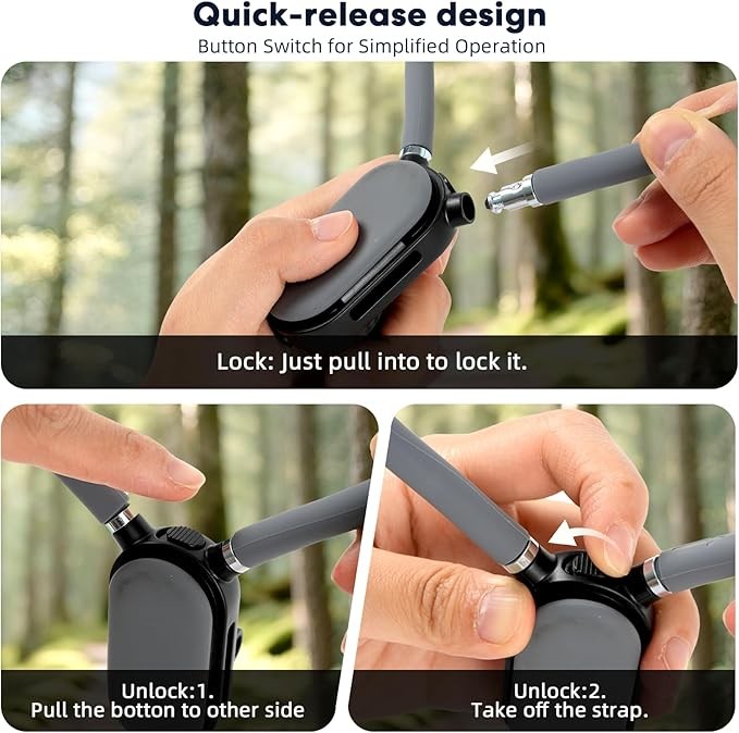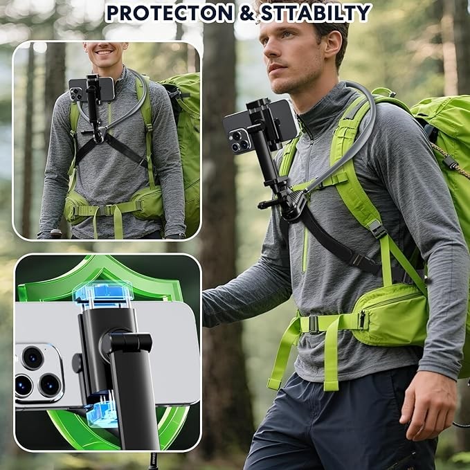 Equipped with Chest Strap:The included shock-absorbing chest strap adds extra stability, keeping your phone or camera steady even during high-intensity activities. It effectively reduces vibrations, delivering smoother footage and clearer images. Whether you're running, cycling, or hiking, the chest strap evenly distributes the weight across your chest, reducing neck strain. It's perfect for extended use, letting you focus on capturing perfect moments without worrying about shaky footage.