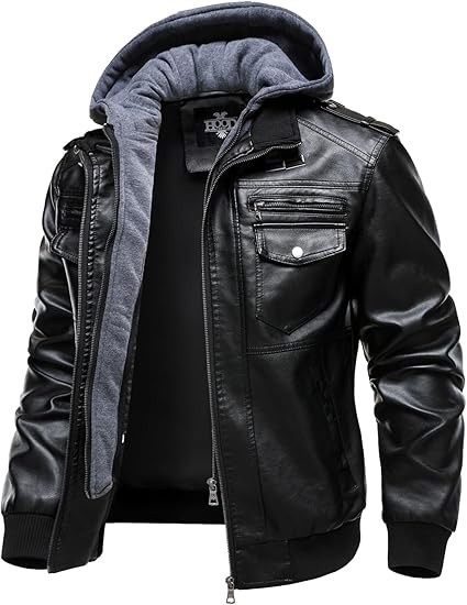 OCCASIONS: Classic PU hoodie jacket--practical and durable leather hoodie jacket suitable for work, daily casual wear, also for motorcycling, biking, driving, racing and outdoor activities.