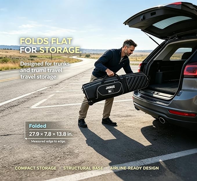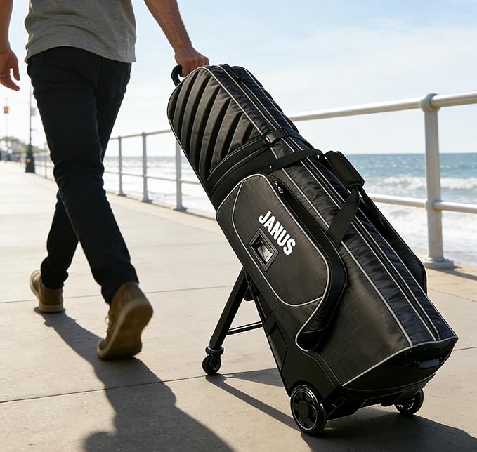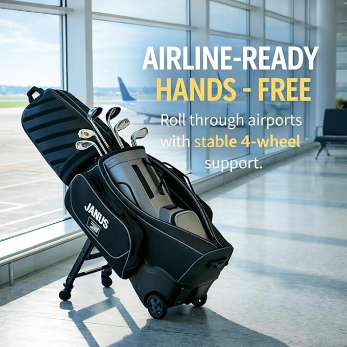 JANUS Golf Travel Bag with Wheels for Airlines, 360° Spinner Golf Travel Case with Collapsible Support Legs System, Reinforced Hard Base Golf Club Travel Bag, Airline-Ready Golf Travel Cover