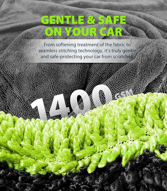 Twisting Yarn Absorption Technology: Harness the power of 1400GSM (grams per square meter) ultra-fine microfiber with our innovative twisting yarn structure. Capable of absorbing up to 1 gallon of water, this towel guarantees a streak-free, spotless finish, leaving your car’s paint gleaming like new