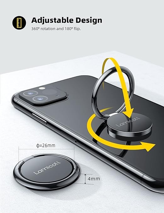 Lamicall Cell Phone Ring Holder Stand - Phone Finger Gip Kickstand, 360° Rotation Polished Metal Grip for Magnetic Car Mount, Fit for iPhone 17/16/15/14 Pro Max Air, Android Smartphone Accessories