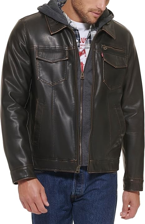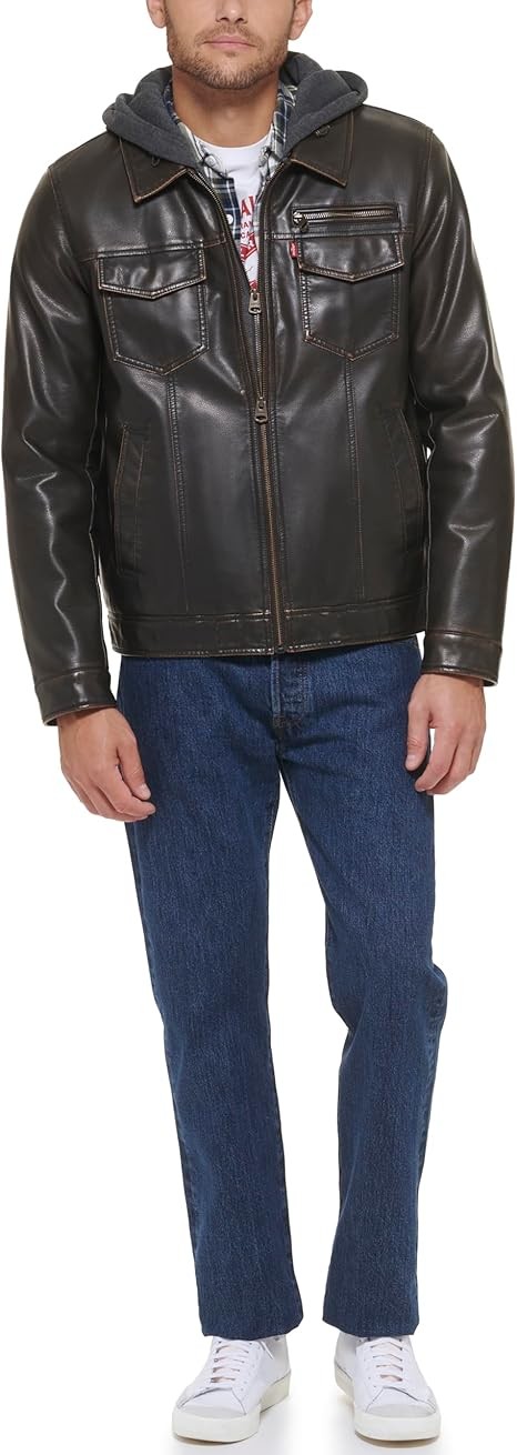 Levi's Men's Faux Leather Hooded Trucker Jacket With Sherpa Lining (Regular & Big & Tall Sizes)