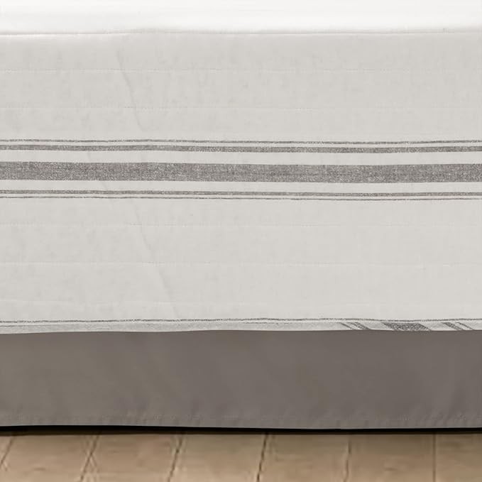 Farmhouse Bedding: Add farmhouse style to your home with the Lush Decor Farmhouse Stripe Cotton Daybed Cover Set. The design is reminiscent of shiplap beams, with a pattern of thin and thick colored stripes on a cream background.