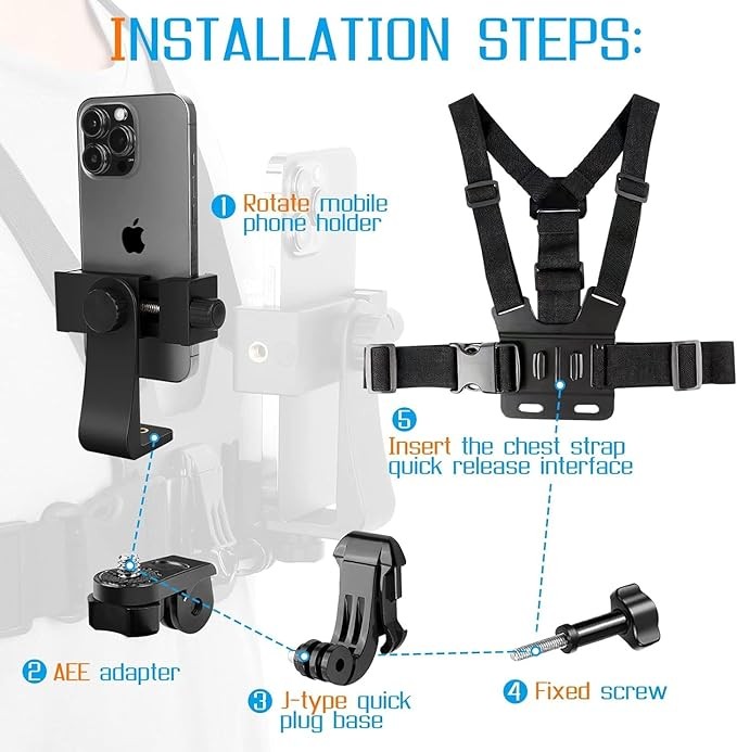 【Wide Compatiblity】Accessories kit not only use fo 4-7inch smartphone,also fit all Go Pro Hero9/8/7/6/5/4/32/1, Session, Fusion and DJI OSMO Action, Insta360 One R,, AKASO, SJCAM etc