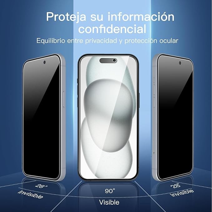 Content: 3 Tempered Glass Privacy Screen Protectors for iPhone 16, iPhone 15 (6.1 inches) and an easy installation tool. The privacy screen protector can protect the confidentiality of the data on the screen. It reduces the viewing angle to prevent prying eyes, keeping confidential information out of sight from third parties.