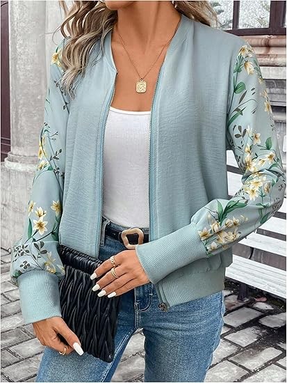 Occasion: This floral zip-up jacket is suitable for date nights, weekend brunches, shopping trips, light office layering, and evening strolls