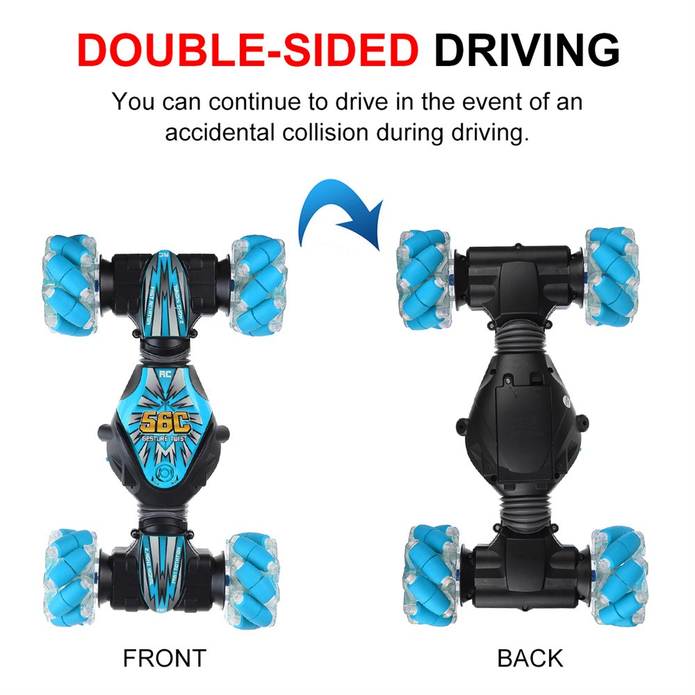 (1) The innovative operation mode of the somatosensory remote control will surely make your child feel excited and happy. It is a perfect gift for your child. (2) The essential operation of the stunt car seems simple. Sti,to operate the stunt car to perform various stunts, children need to practice and try to exercise the child's handeye coordination and concentration.