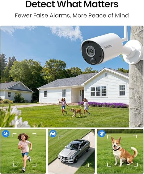 Smart Detection: Advanced motion detection captures people and vehicles, sending real-time alerts via push notifications, email, or siren. Stay informed of any suspicious activity around your house. Fully secure areas like your front door, porch, backyard, and garage.