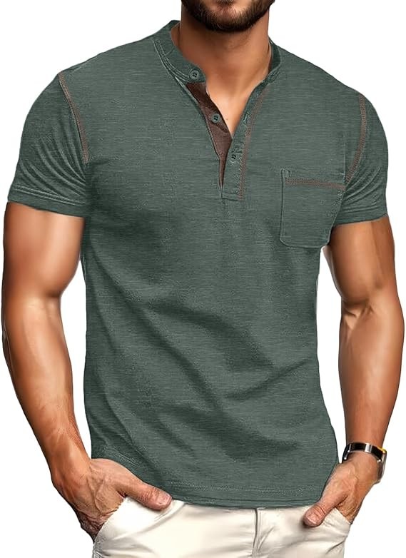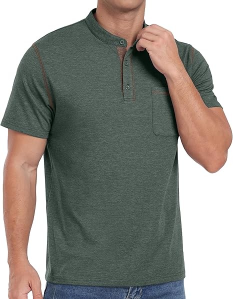 【Stylish Design】Henley t shirts for men, short sleeve, featured 3 button detail, chest pocket, color contrast.