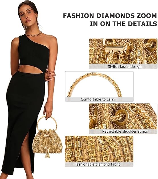 FEATURES: Our luxury glitter evening clutch is chic and unique with metal loop handles, detachable shoulder strap and full of dazzling rhinestones, All-round sparkling appearance, very fashionable, make you stand out from the crowd. Tassel & Drawstring Design-protect your bag with a tassel hook & drawstring and tensioning the chain securely. This Evening Clutch Bags will make you a dazzling one on every occasion.