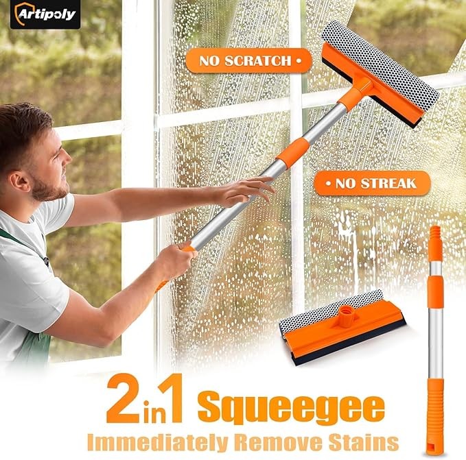 【Versatile Use】 ARTIPOLY Professional Multi-Functional Window Squeegee With Scrubber Can Be Purchased For Household Needs As Well As For The Professional Wants. It Can Be Used On Dinners, Gas Stations, Carwashes, Offices, Cafés, Shops, Malls, Gyms And More. Good Choice For Windows, Glass Doors, Shower Doors, Tables, Mirrors, Auto Windshields & Windscreens | Can Be Used While Cleaning Your Tiles, Floors And Other Surfaces.