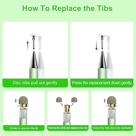 【After Service】You will get 3 stylus pen for touchscreen in different colors (green/rose gold/purple),stylus accessories include 2 disc nibs and 2 fiber pen caps, both ends are freely replaceable without tools, you can easily replace them by rotating the end of the fiber pen cap or pulling out the disc nib. You can share the stylus for ipad with your family and friends. When you have problems with the Zhao Cai Jin Bao stylus pen and need help, you can always contact us.