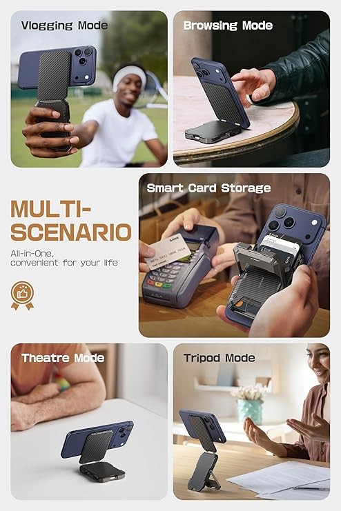 SUPCASE for MagSafe Wallet with Stand, Magnetic Wallet for Men, [Hold 5 Cards] [Adjustable Stand] [RFID Blocking] Phone Stand Credit Card Holder Tripod for iPhone 17/16/15/14/13/12 Series, Carbon